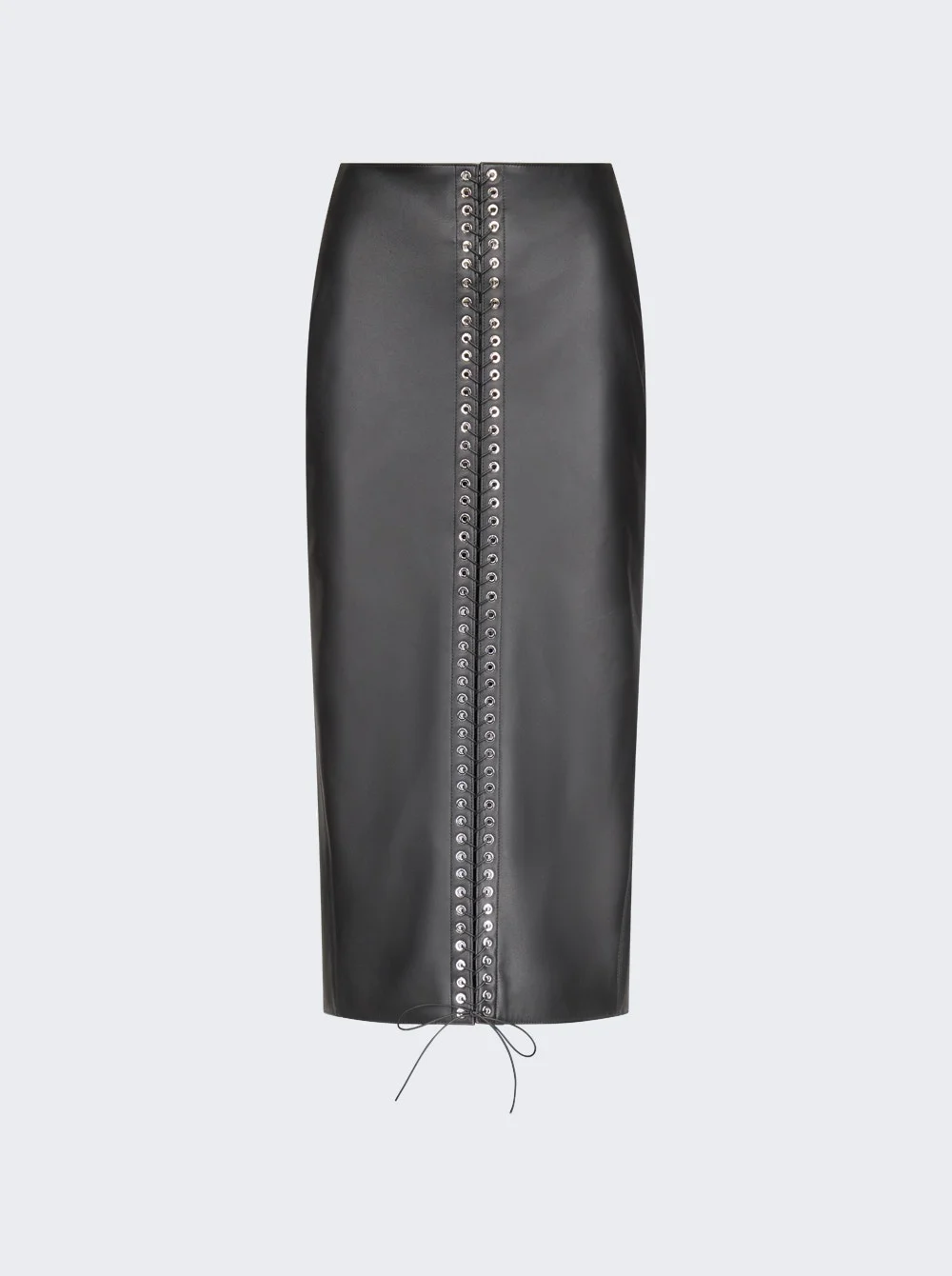 Details - Slim fit - Midi length - High rise - Eyelet detailing up to the hemline - Pencil cut silhouette - Zip Fastening Through Back - Fully Lined - Care according to label - Material: 100% Lamb leather Size Information: Vendor Color Code: Brand Style: AW25-SK025-W-LEA Designer/Brand: LUDOVIC DE SAINT SERNIN
