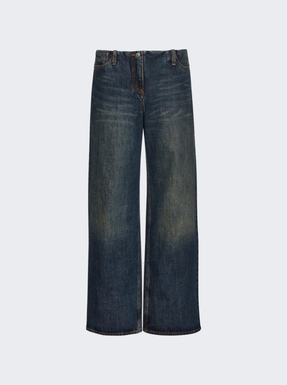 Ultra-low-waist wide-leg denim in dark vintage blue