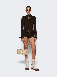 Buckle zip up sweater in brown