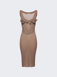 Flower bustier midi dress in beige