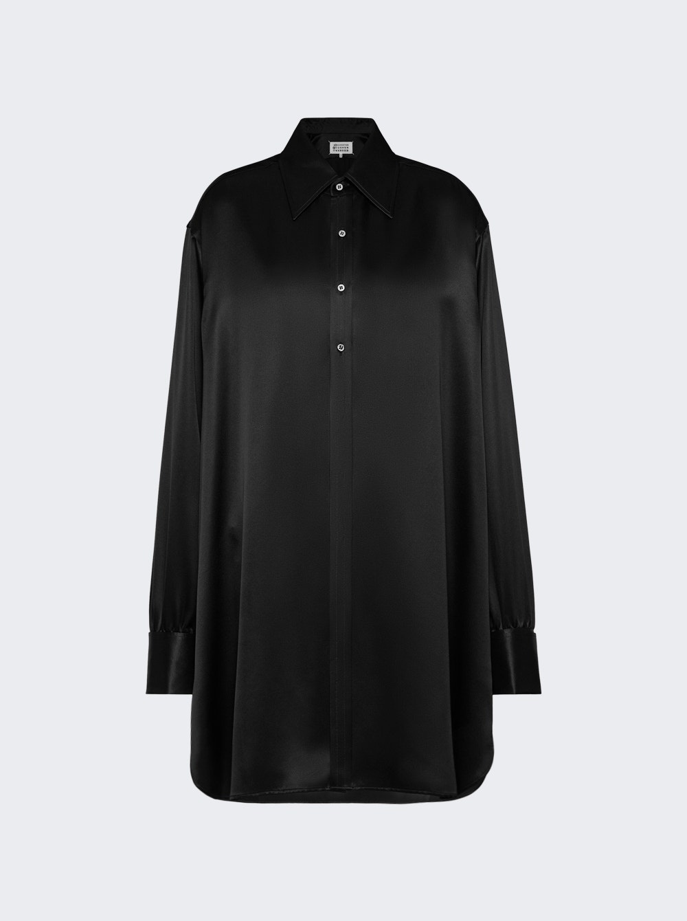 Details - Silk long shirt - Pointed collar - Mother of pearl button closure - Buttoned cuffs - Curved hem - Side slits - Maison Margiela's signature, the Four stitches, appear at the back Dimensions: Model is 6'1"/185cm and is wearing a size EU48 Composition: 100% Silk Care: Care according to label Brand Style: S51DT0015 S78059 Designer/Brand: MAISON MARGIELA