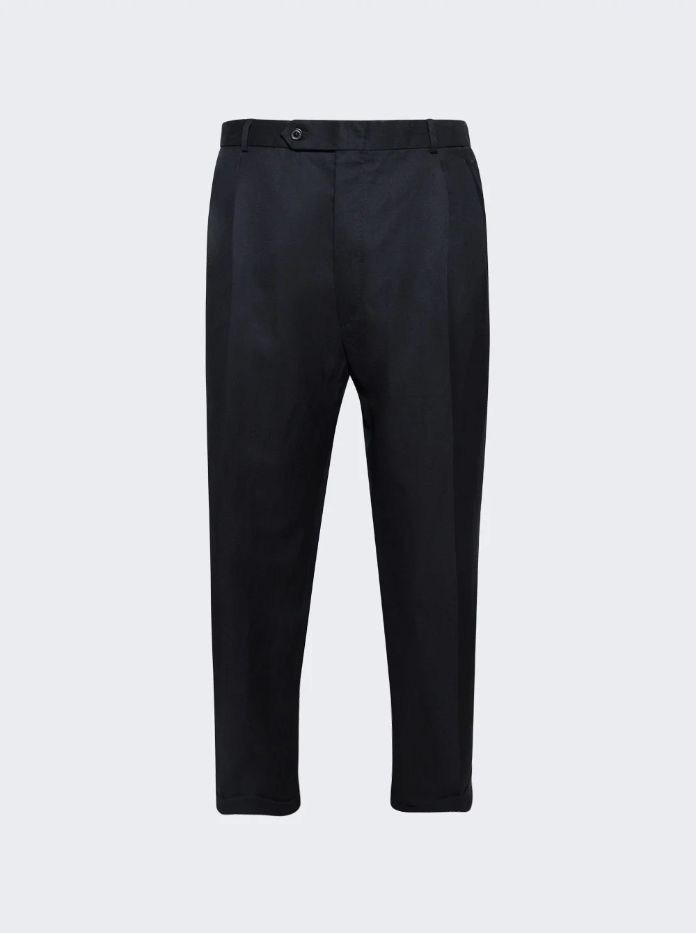 Details - High waist - Staight leg - Belt loops - Central pleats - Button closure - Side pockets - Four stitches at the back - Zip and button closure - Care according to label - Material: 65% Virgin Wool, 35% Linen - Model is 6'1"/185cm and is wearing a size EU48 Brand Style: S50KA0669 M35287 Designer/Brand: MAISON MARGIELA