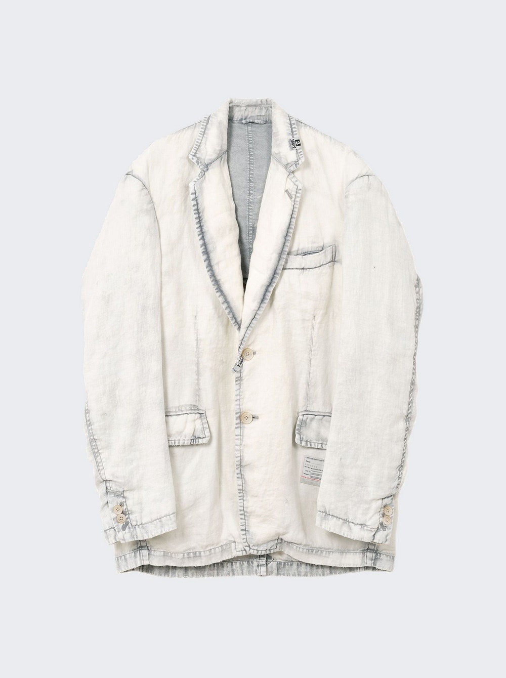 Details - Oversize fit - Long sleeves - Front button closure - One breast welt pocket - Two front flap pockets - Flap pockets - Inner pocket - Care according to label - Material: 100% Linen - Model is 6'1"/185cm and is wearing a size EU48 Brand Style: A14JK033 Designer/Brand: MAISON MIHARA YASUHIRO