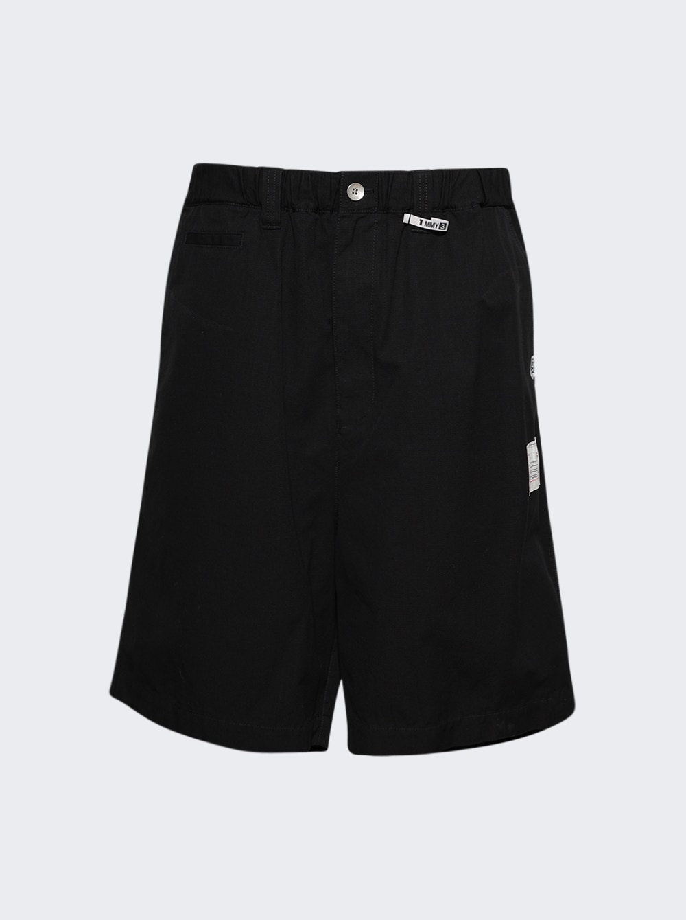 Details - Regular fit - Short length - Worn effect - Interchangeable design - Elasticated waistband - Button and zip closure - Front and side logo labels - Cargo pockets - Back flap pockets - Care according to label - Material: 100% Cotton - Model is 6'1"/185cm and is wearing a size EU48 Brand Style: A14PT042 Designer/Brand: MAISON MIHARA YASUHIRO