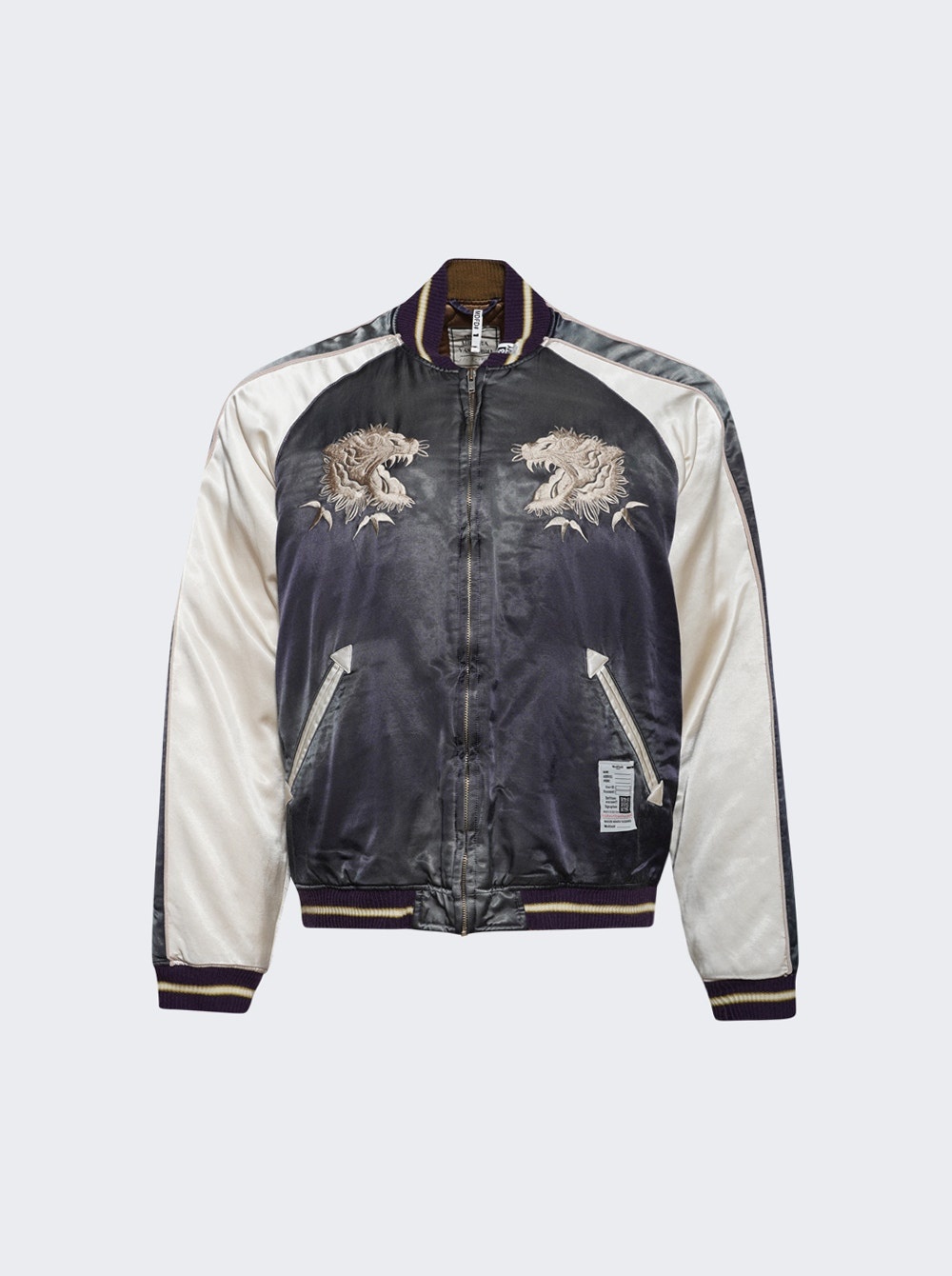Details - Regular fit - Baseball collar - Long sleeve - Zip fastening - Embroidered motif - Panel detailing - Ribbed cuffs and hem - Two side slit pockets - Straight hem - Care according to label - Material: 58% Cotton, 42% Rayon - Model is 6'1"/185cm and is wearing a size EU48 Brand Style: J13BL141 Designer/Brand: MAISON MIHARA YASUHIRO