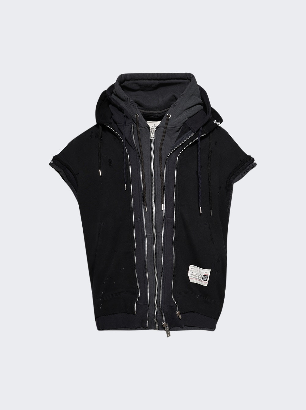 Details - Relaxed fit - Zip closure - Drawstring hood - Distressed design - Sleeveless - Triple layer construction - Care according to label - Material: 100% Cotton Size Information: Vendor Color Code: Brand Style: A14VT562 Designer/Brand: MAISON MIHARA YASUHIRO
