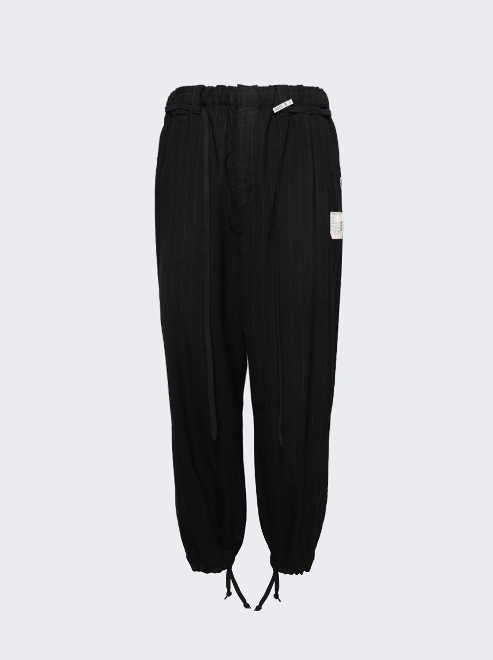 Details - Relaxed fit - Wide leg - Drawstring fastening - Elasticated waistband - Belt loops - Side and back pockets - Care according to label - Material: 100% Wool - Model is 6'1"/185cm and is wearing a size EU48 Brand Style: A14PT032 Designer/Brand: MAISON MIHARA YASUHIRO