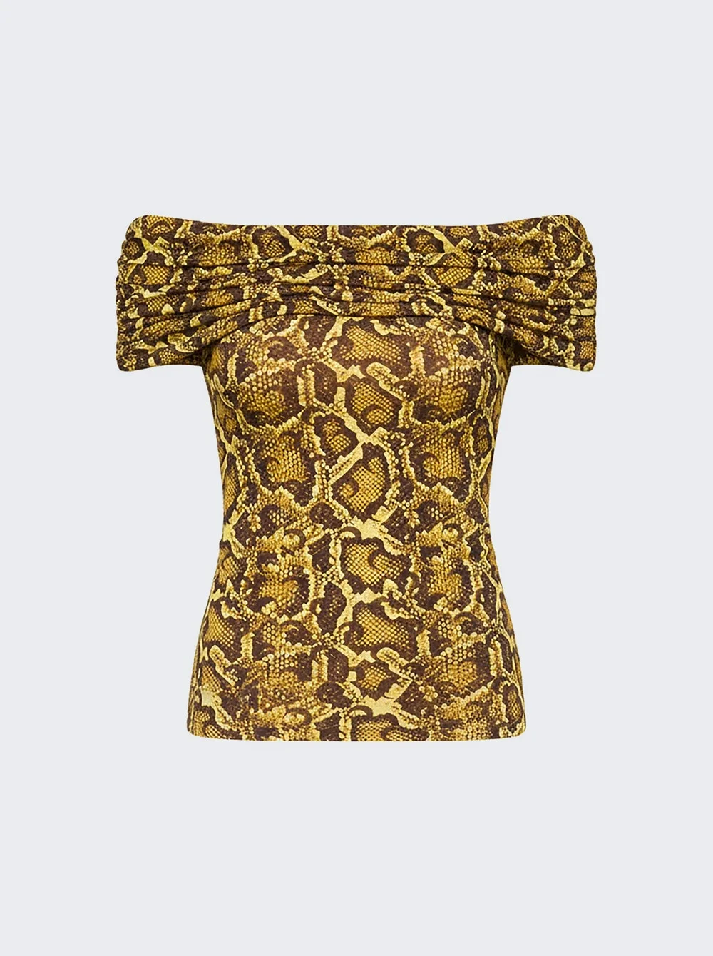 DRAPPED PYTHON PRINTED JERSEY OFF SHOULDER TOP