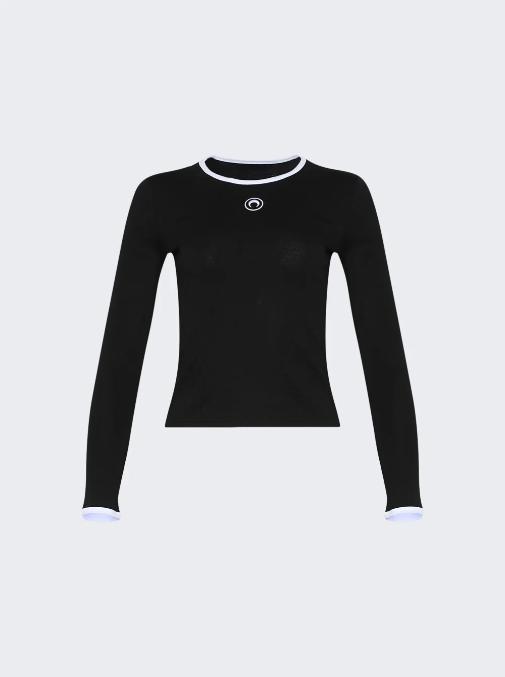 Moon Logo Bicolor Jersey Ls Tee Black And White