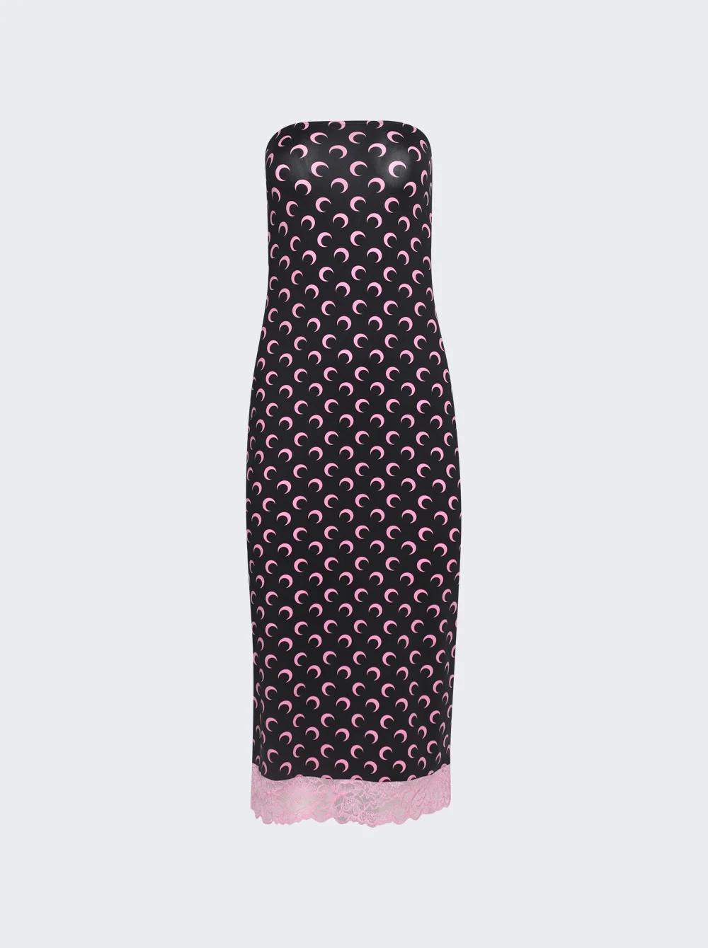 Details - Tube - silhouette - Midi length - Strapless - Signature Moon printed all over - Elasticated band with anti-slip tape inside - Elasticated lace hem - Care according to label - Material: 88% Polyamide, 12% Elastane Vendor Color Code: Brand Style: WDR333ACJER0001 Designer/Brand: MARINE SERRE