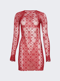 Moonogram Mesh Flock Mini Crewneck Dress Ribbon Red