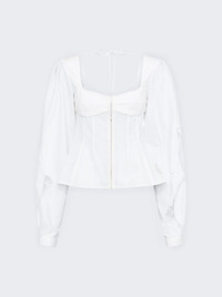 Details - Corset blouse with open square neckline - Puffy sleeves - Tue closure at upper back - Hook front closure - Buttoned cuffs - Upcycled household linen patchwork construction - Turned hem - Lace branded patch embroidered on waist - Material: 100% Cotton Size Information: Vendor Color Code: Brand Style: WSI028A UWOV0007 Designer/Brand: MARINE SERRE