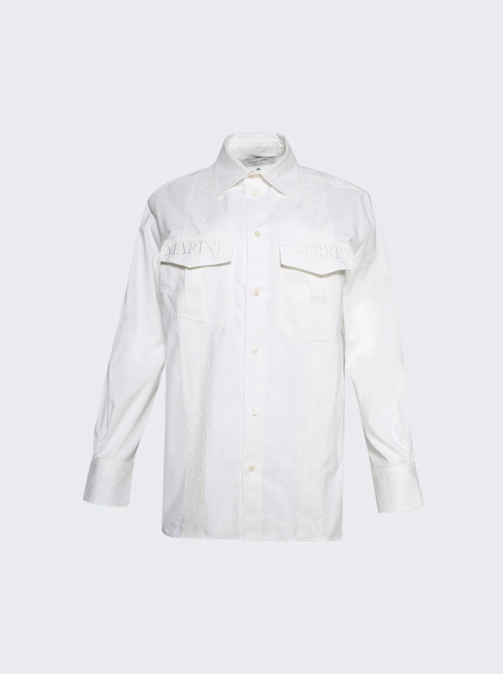 Details - Seven button front - Tailored sleeves with plackets and two button cuffs - Pleated gathers on bottom of sleeve cuffs - Twin extra-large army pleated pocket in front - Back yoke with back pleats - Logo embroidered on twin pockets Dimensions: Model is 5'9"/175cm and is wearing a size S Composition: 100% Cotton Care: Care according to label Brand Style: USI022A Designer/Brand: MARINE SERRE