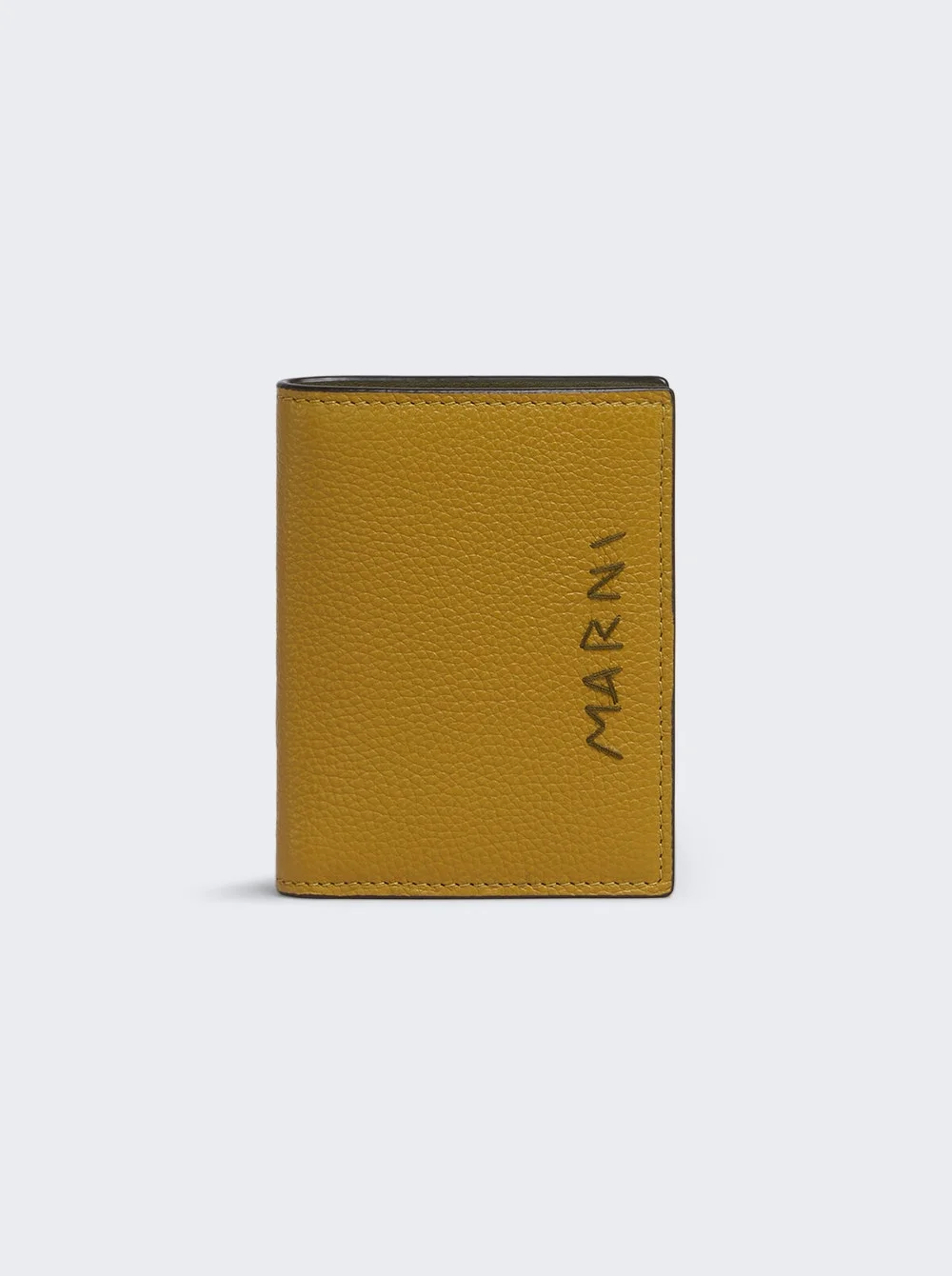 MUSTARD LEATHER BIFOLD WALLET WITH MARNI MENDING EMBROIDERY