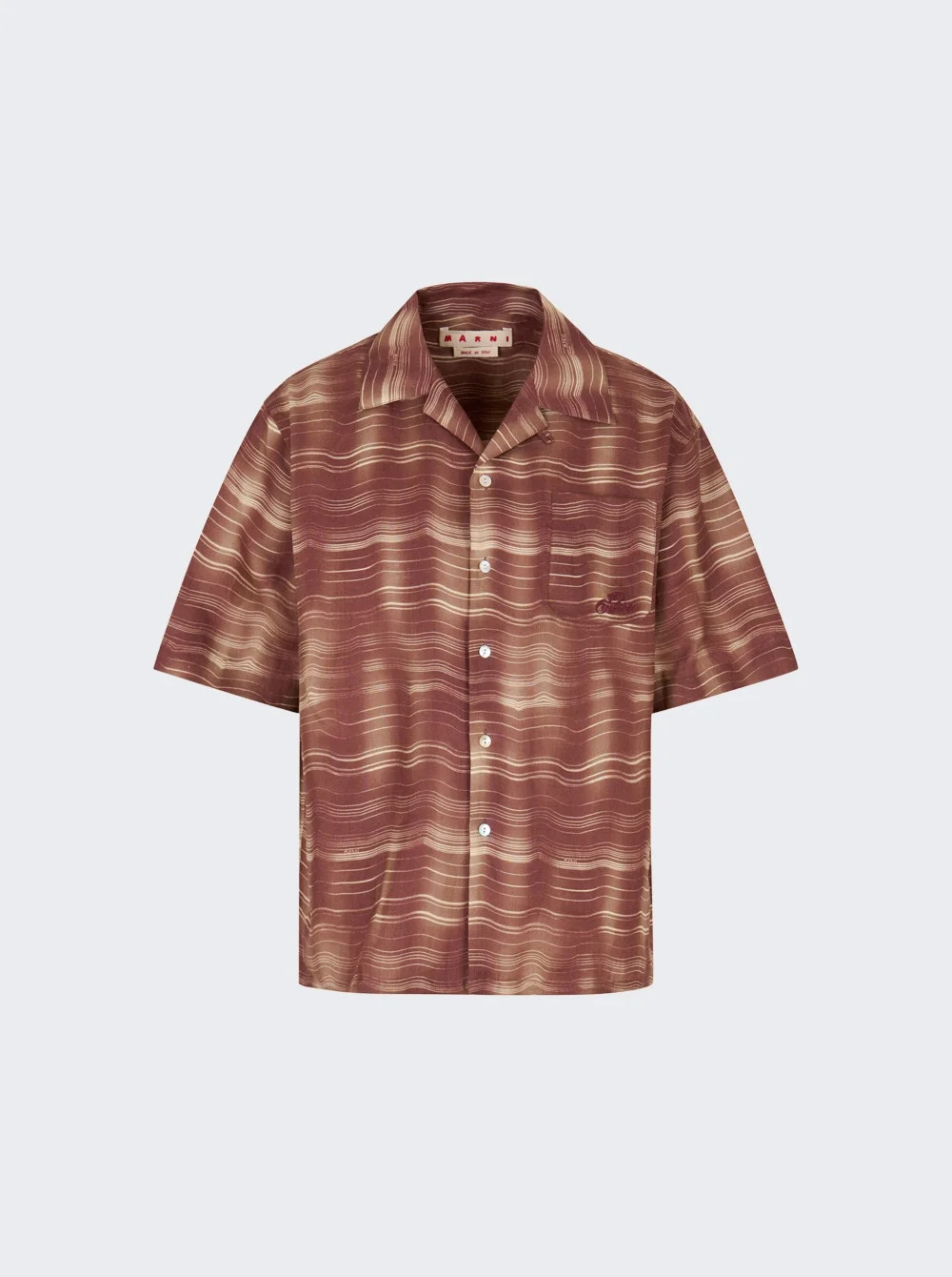 BROWN RAMIE BOWLING SHIRT WITH CAROUSEL PRINT