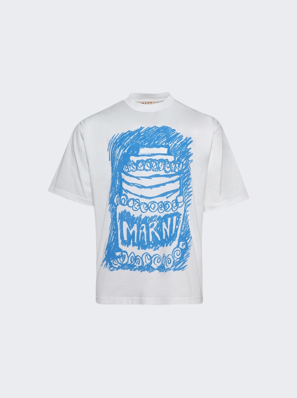 Details - Short sleeve t-shirt - Crayon print on front - Relaxed fit Dimensions: Model is 6'1"/185cm and is wearing a size EU48 Composition: 100% Cotton Care: Care according to label Brand Style: HUMU0223PW USCX12 Designer/Brand: MARNI