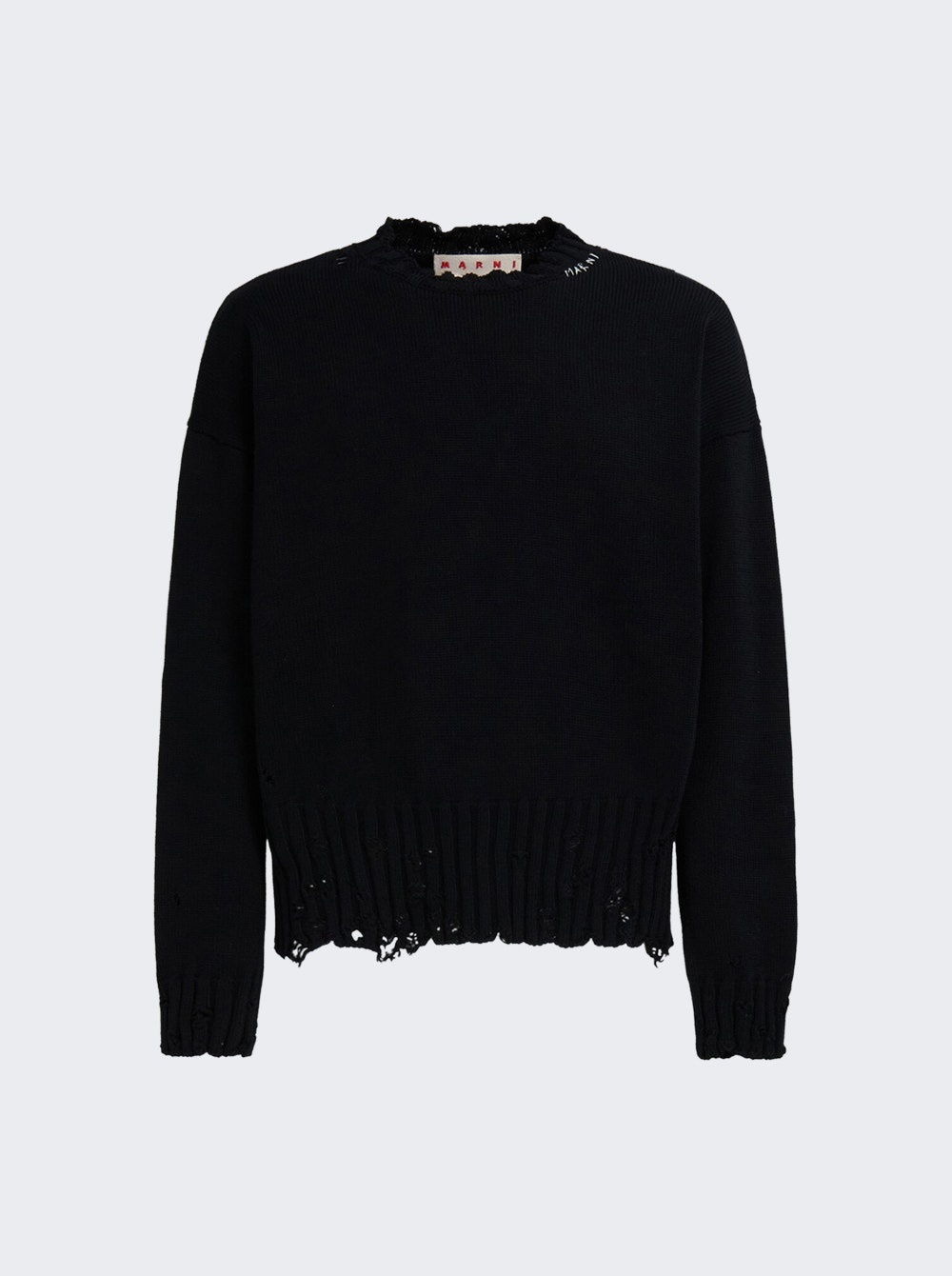 Details - Long-sleeved jumper with crew neck - Boxy fit, featuring wide ribbed trims with disheveled detailing - Hand-stitched Marni mending logo on the neck - Relaxed fit Dimensions: Model is 6'1"/185cm and is wearing a size EU50 Composition: 100% Cotton Care: Care according to label Brand Style: GCMG0210A0 UFC652 Designer/Brand: MARNI