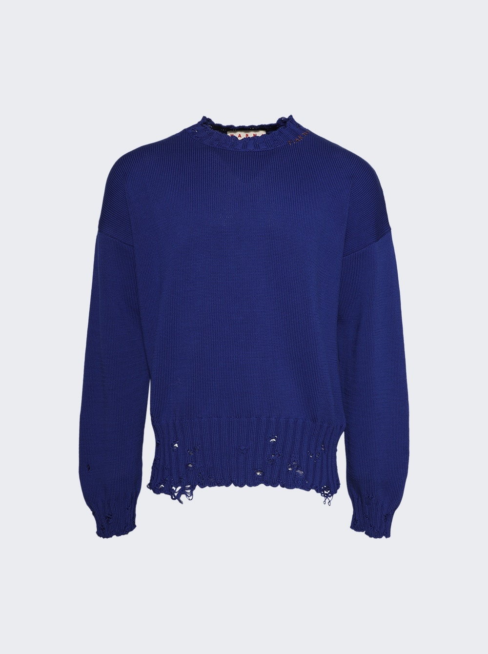 Details - Long-sleeved jumper with crew neck - Boxy fit, featuring wide ribbed trims with disheveled detailing - Hand-stitched Marni mending logo on the neck - Relaxed fit Dimensions: Model is 6'1"/185cm and is wearing a size EU50 Composition: 100% Cotton Care: Care according to label Brand Style: GCMG0210A0 UFC652 Designer/Brand: MARNI