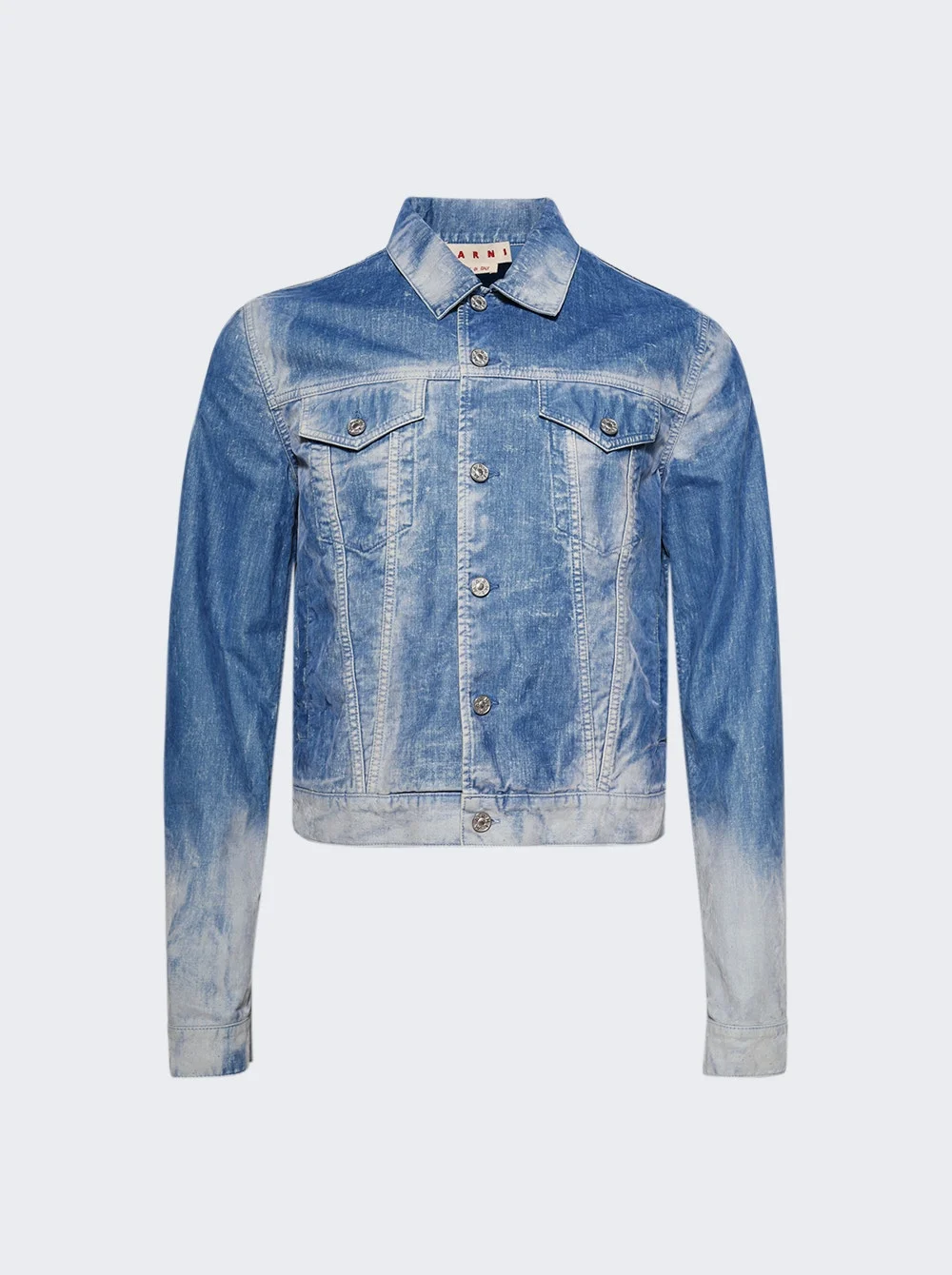 Details - Flocked denim jacket - Garment-dyed and bleached for a degrade effect - Classic trucker silhouette - Button closure, buttoned flap pockets, vertical side pockets - Material: 100% Cotton Vendor Color Code: Brand Style: JUJU0020X0 USCY24 Designer/Brand: MARNI