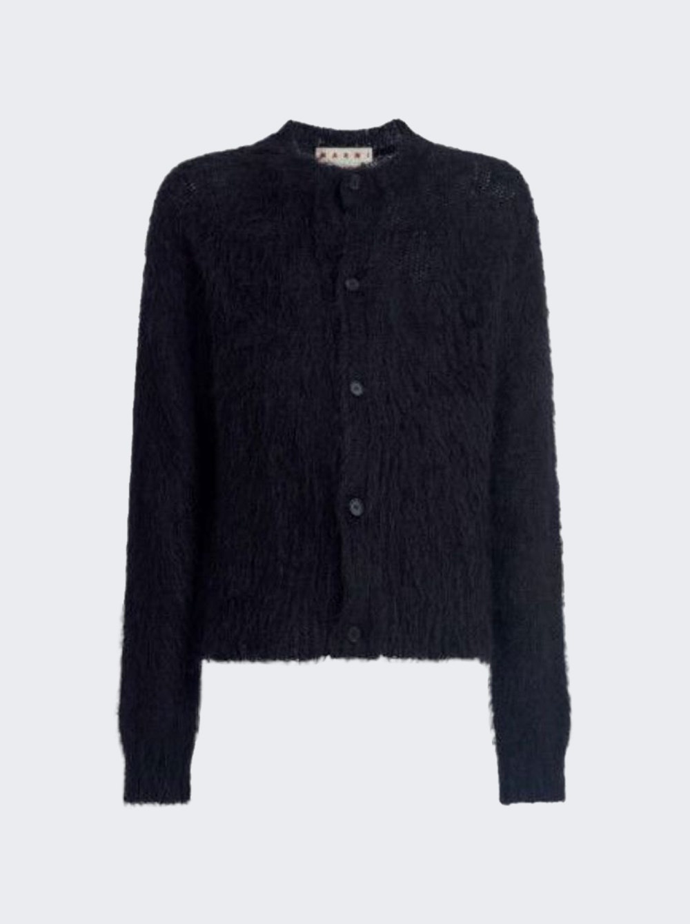 Details - Brushed mohair knit cardigan - Crew neck - Button closure - Straight hem Dimensions: Model is 6'1"/185cm and is wearing a size EU52 Composition: 80% Mohair, 20% Polyester Care: Care according to label Brand Style: CDMG0150A0 UFU172 Designer/Brand: MARNI