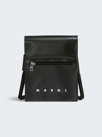 Details - Gusseted pouch with long shoelace-style strap - Double snap button flap closure - Front zip pocket - Marni logo print - Palladium hardware Composition: 64% Polyurethane 36% Polyester; Contrast: 100% Polyester Care: Care according to label Brand Style: SBMQ0036A1 P5769 Designer/Brand: MARNI