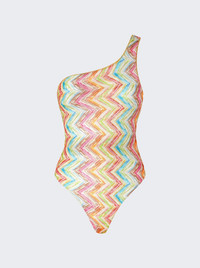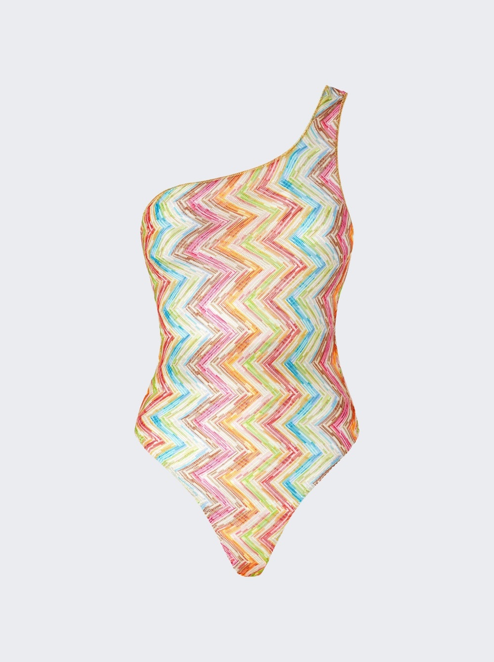 Details - One-piece swimsuit - One-shoulder design - Tulle printed - Zig-zag pattern - Main: 100% Polyester - Lining: 80% Polyamide, 20% Elastane Brand Style: MC22SP04 BR010X Designer/Brand: MISSONI