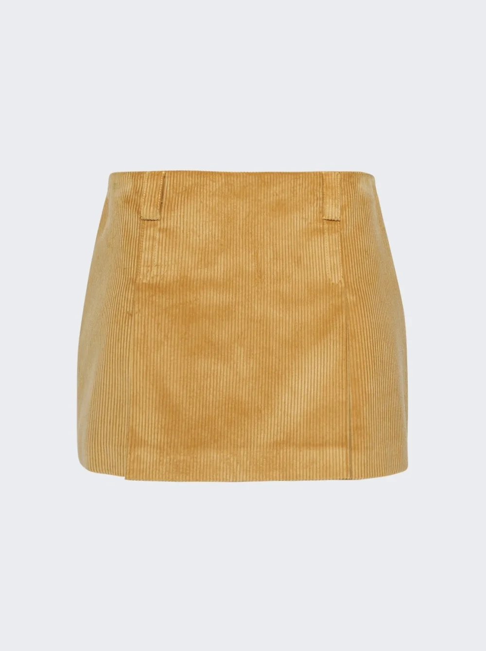 Details - Pleated corduroy mini skirt - Fully lined - Hidden side zipper closure - Belt loops Dimensions: Model is 5'9"/175cm and is wearing a size IT40 Composition: 100% Cotton; Lining: 100% Viscose Care: Care according to label Brand Style: MG2064 S LMO GONNA Designer/Brand: MIU MIU