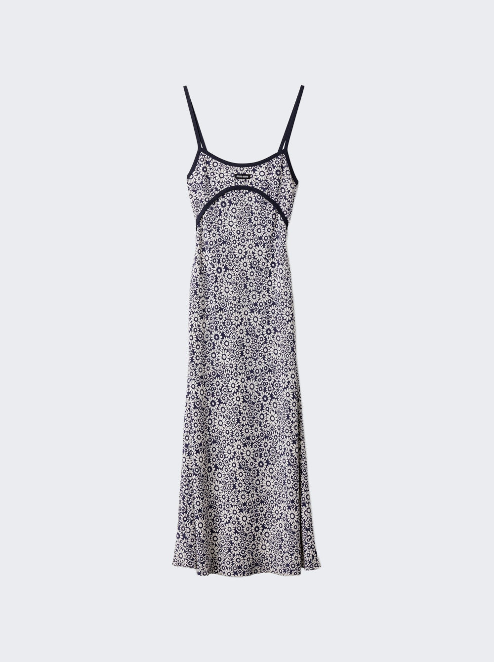 Details - Flared fit - Lined garment - Scoop neck - Spaghetti straps - Side zipper closure with hook - Knit logo label - Midi length - Care according to label - Material: 100% Silk Size Information: Vendor Color Code: Brand Style: MF5835 S OOO 17O5 Designer/Brand: MIU MIU