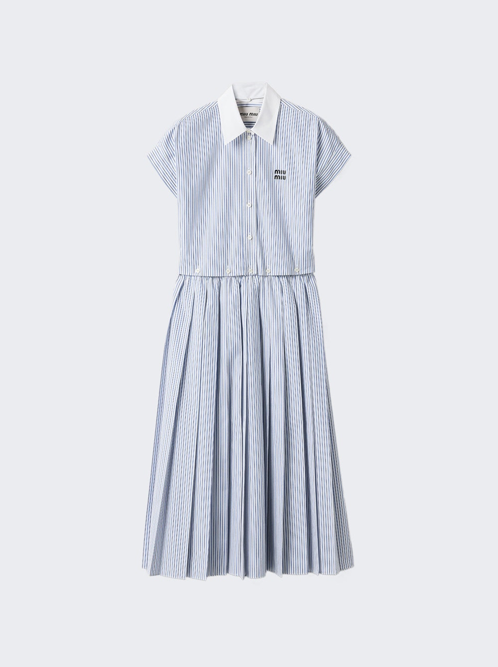 Details - Fit silhouette - Unlined - Short sleeves - Embroidered logo - Classic collar - Button closure - Midi length - Care according to label - Material: 100% Cotton Size Information: Vendor Color Code: Brand Style: MF5989 S OOO 174T Designer/Brand: MIU MIU