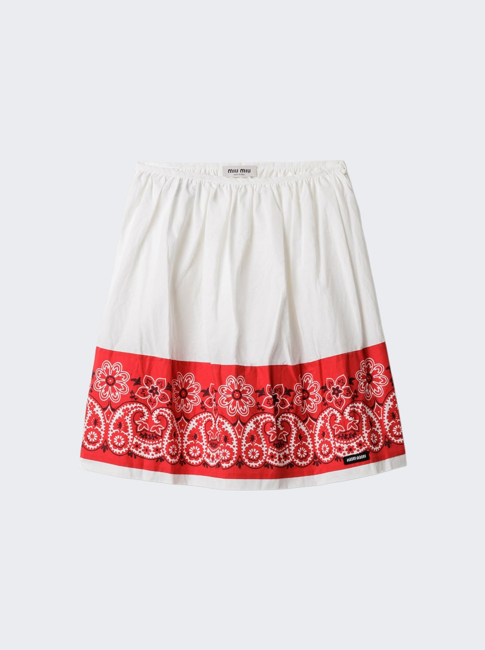 Slubbed Poplin Skirt With Print Bianco And Rosso
