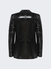 Details - Distressed metallic jacquard suit jacket - High-shine, metallic-effect finish - Single-breasted - Shawl lapel - Single-button fastening - Welt pockets and chest pocket - Lightly padded shoulders - Back vent - Material: 52% Acetate, 32% Cotton, 16% Polyester Vendor Color Code: Brand Style: SH2BN0015 M35610 Designer/Brand: MM6 MAISON MARGIELA