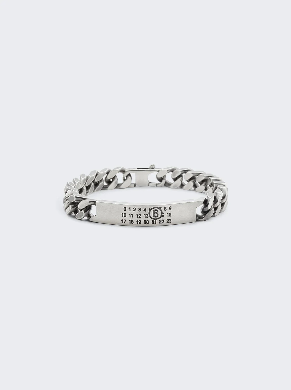 Details - Curb chain bracelet - Antiqued silver-tone brass - Logo plaque at length - Lobster-clasp fastening - Care: To keep the luster of your piece avoid contact with perfumes or lotions. Remove before showering, swimming, or exercise. After each use wipe your piece with a jewelry cloth or cotton ball. - Material: Brass Vendor Color Code: Brand Style: SM6UY0049 SV0235 Designer/Brand: MM6 MAISON MARGIELA