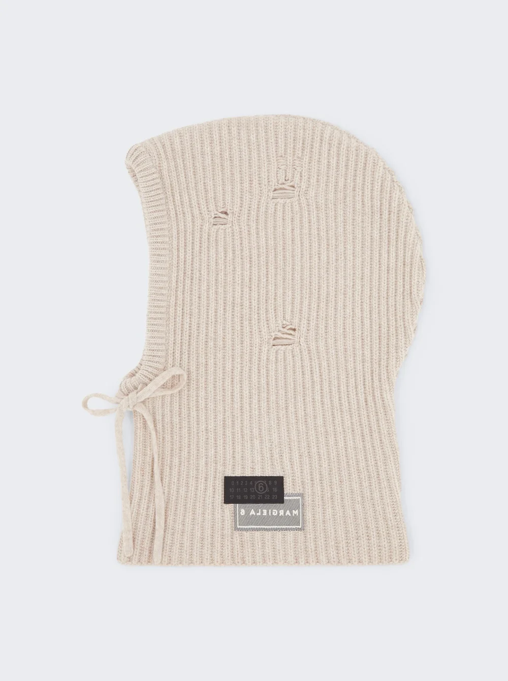 Primary Fabric: 80% Wool, 20% Polyamide-Nylon Drawstring hood with an extended neckline Ribbed knit construction with distressing Dual artwork patch at the collar Vendor Color Code: Brand Style: S52TB0008 M13138 Designer/Brand: MM6 MAISON MARGIELA