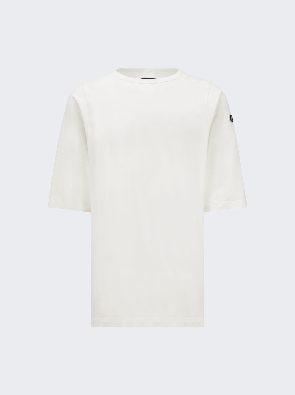 Details - Designed in collaboration with Moncler - Crewneck t-shirt - Knitted fabrication - Short sleeves - Logo patch on right sleeve - Straight hem - 100% Cotton Brand Style: MU02D8C01 M4630 Designer/Brand: RICK OWENS