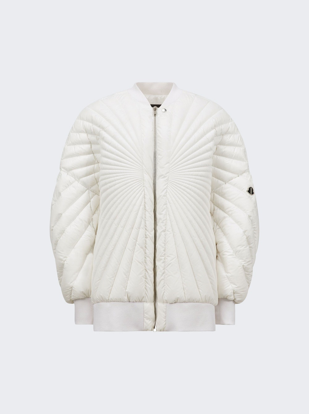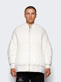 Details - Designed in collaboration with Moncler - Quilted bomber jacket with down filling - Quilted in a unique radial pattern - Puffier at the sleeves - Stand collar; zip front - Patch at the sleeve - Press-stud fastening side pockets - Webbing strap to the rear - Main: 100% polyester - Filling: 90% down, 10% feathers (Goose) Brand Style: MU02D1A01 M4424 Designer/Brand: RICK OWENS