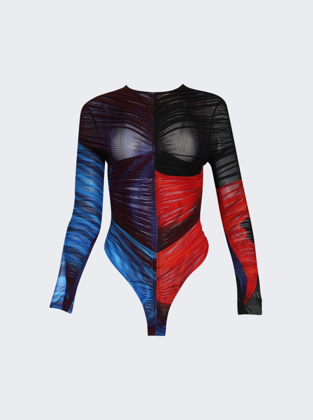 Details - Fitted fit - Bodysuit silhouette - Long sleeves - Round neck - Draped design - Concealed zip fastening - Care according to label - Material: 94% Polyamide, 6% Elastane - Model is 5'9"/175cm and is wearing a size FR36 Brand Style: 25P3BO0262585 Designer/Brand: MUGLER