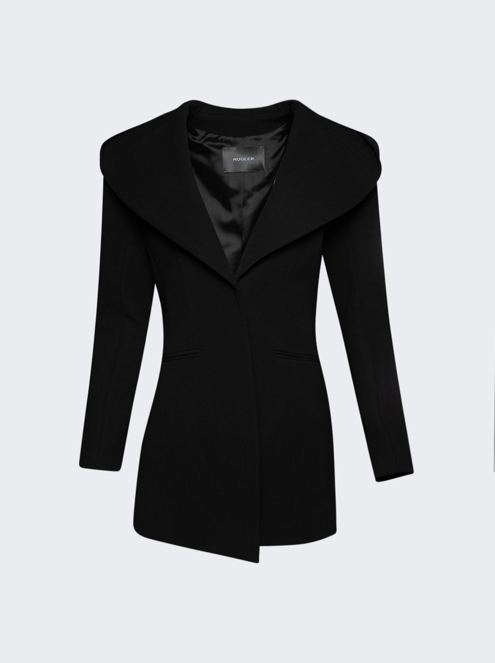 Details - Fitted silhouette - Long slevees - Open V neckline with integrated hood - Padded shoulders - Hidden Snap-button closure - Fitted waist - Jetted pockets - Care according to label - Material: 100% Cupro Size Information: Vendor Color Code: Brand Style: 25F1VE0465196 Designer/Brand: MUGLER