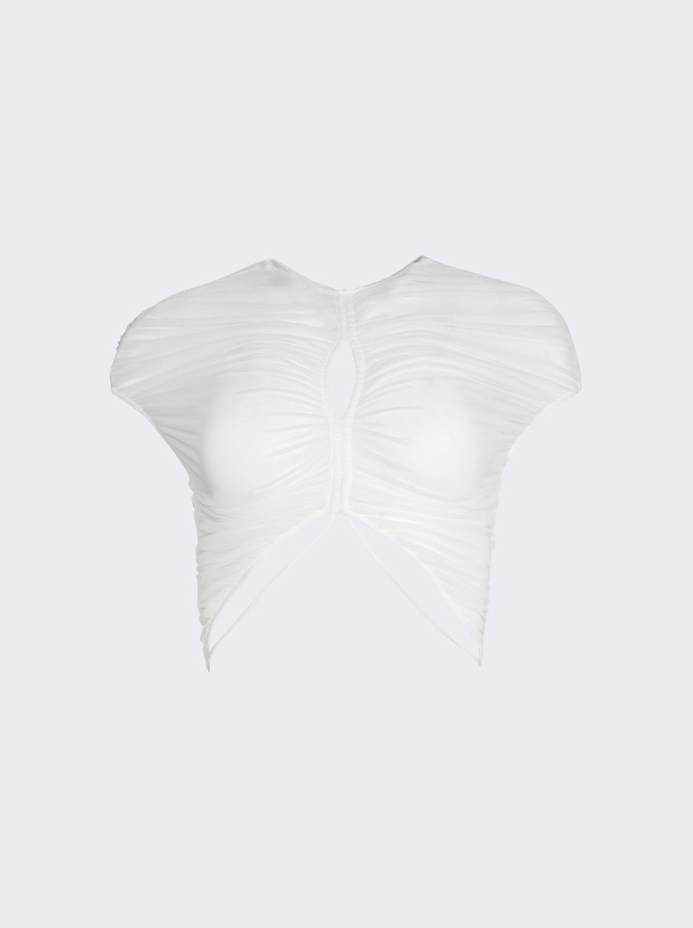 Details - Short sleeves - Draped effect - Cropped - High front slit - Topstitching Dimensions: Model is 5'9"/175cm and is wearing a size FR36 Composition: Fabric blend Care: Care according to label Brand Style: 24P1TO0666595 Designer/Brand: MUGLER