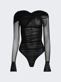 Semi-sheer Gathered Bodysuit Black