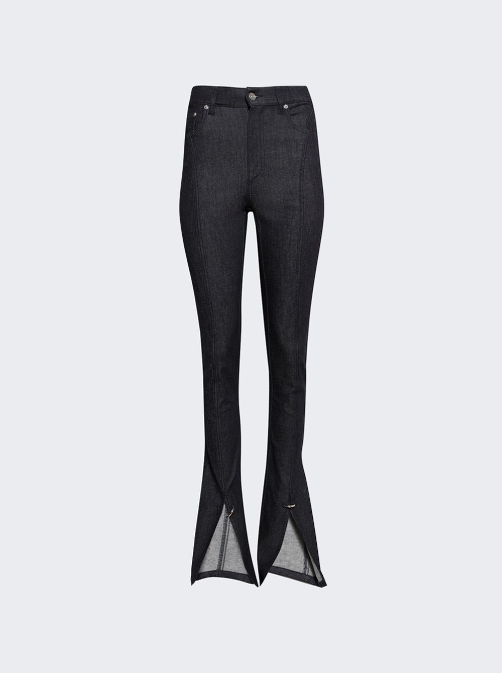 Details - High waisted - Skinny fit - Long length - Ankle slits with pierced buckle - Front button - Logo tag at back - Care according to label - Material: 98% Cotton, 2% Elastane - Model is 5'9"/175cm and is wearing a size 26/27 Brand Style: 25P6PA04962013 Designer/Brand: MUGLER