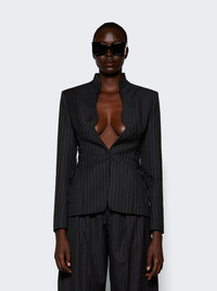 Pinstripe Scultural Laced Jacket Black On Grey