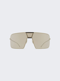 Details - Frame: MH74-Titan/Pitch Black - Lens: Electrum Mirror - Toric lens shield with wraparound coverage - Material: circular stainless steel - Patented spiral hinge - Anti-slip silicone temple tips and nose pads - Highly adjustable for optimal fit - 100% protection against UVA/UVB rays - Frame width: 164mm; Length: 125mm; Height: 56mm This VISOR sunshield is engineered for the dynamic environment of modern transit. The sleek design combines ultra-light stainless steel with a wraparound toric lens shield held in place with a MYLON® shield clip, reflecting the technical innovation shared by both MYKITA and RIMOWA. Each pair is meticulously handcrafted at MYKITA HAUS in Berlin and arrives in a co-branded glasses case with a certificate of authenticity. Vendor Color Code: Brand Style: 10087680 Designer/Brand: MYKITA