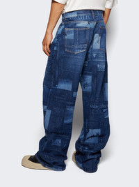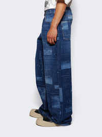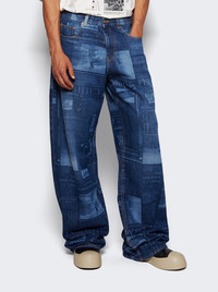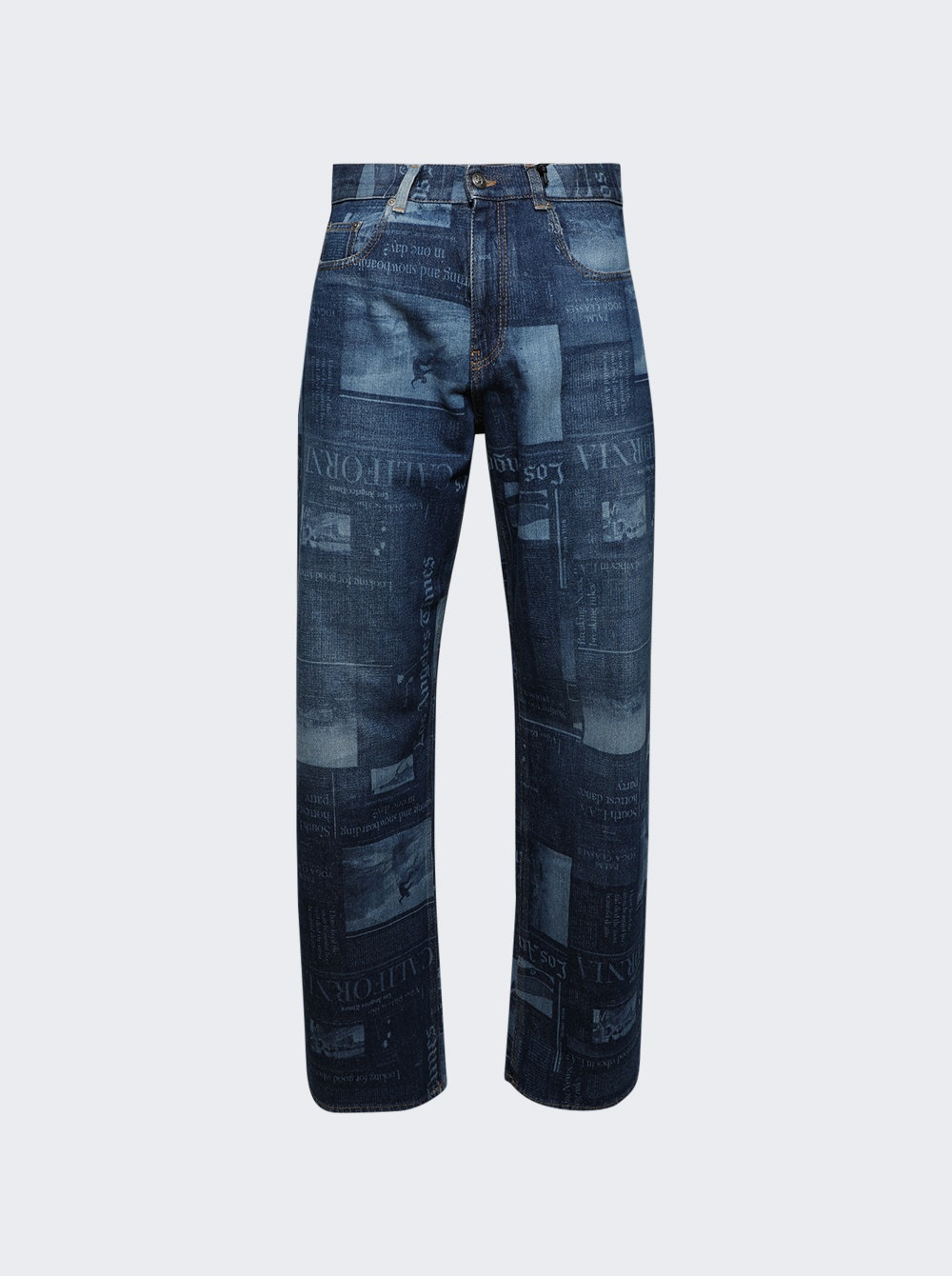 Details - Loose fit - Belt loops - 5 pocket design - Printed LA news - Zip and button closure - Care according to label - Material: Cotton Size Information: Vendor Color Code: Brand Style: PMYA049F25DEN0024442 Designer/Brand: PALM ANGELS
