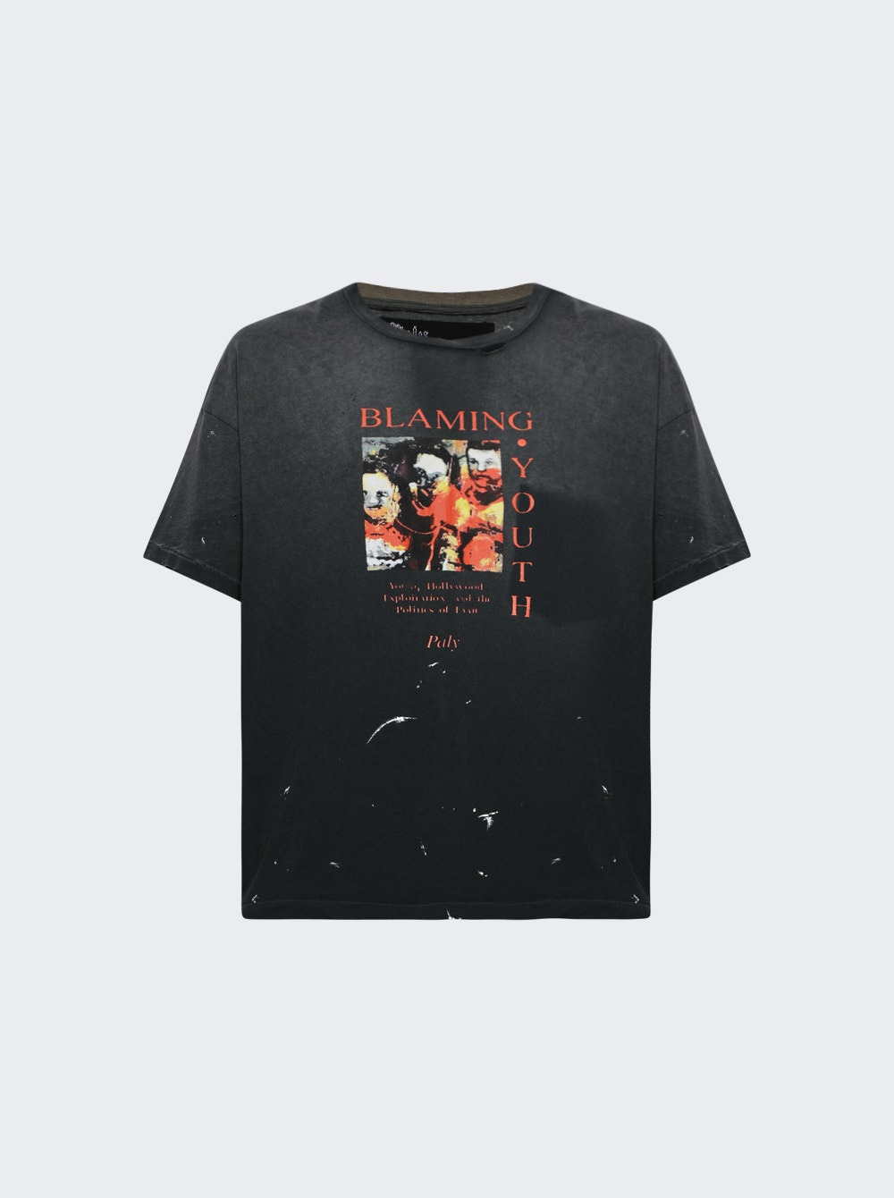 Details - Unisex t-shirt - Boxy, cropped fit - Vintage textured jersey fabric - Heavy enzyme wash process - Minor holes, tears, and distressing throughout - JF original artwork printed throughout - Material: 100% Cotton, Japanese import Size Information: Vendor Color Code: Brand Style: 2U007Q3009VBK Designer/Brand: PALY