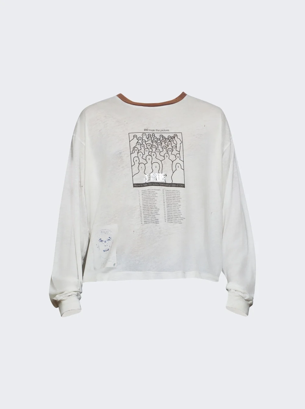 Details - Unisex long sleeve tee - Vintage textured jersey fabric - Heavy enzyme wash process with sun faded detailing - Contrast neckline - Areas of hand distressing throughout - Printed graphics on front and back - Material: 100% Cotton Size Information: Vendor Color Code: Brand Style: 3U003Q3009VWT Designer/Brand: PALY