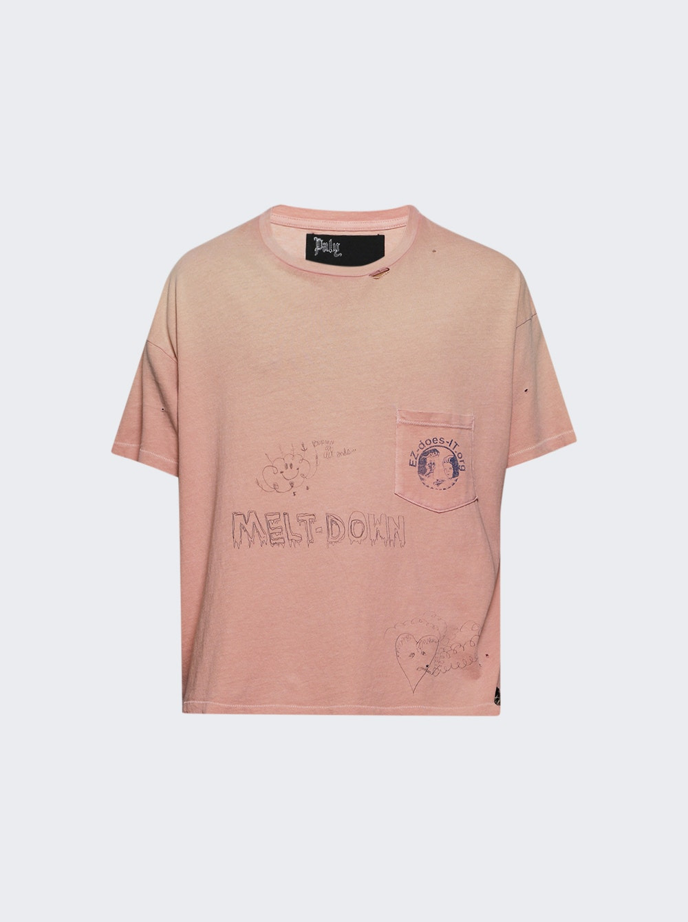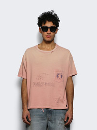 Details - Unisex t-shirt - Boxy, cropped fit - Vintage textured jersey fabric - Heavy enzyme wash process - Minor holes, tears, and distressing throughout - JF original artwork printed throughout - Material: 100% Cotton, Japanese import Size Information: Vendor Color Code: Brand Style: 2U005Q3009PNK Designer/Brand: PALY