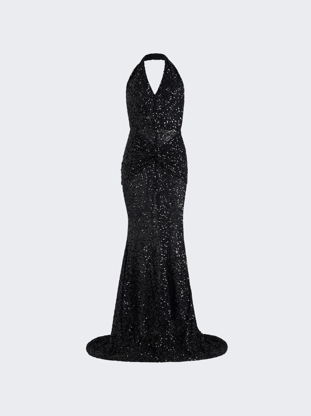 Details - Draped sequin - Halterneck with a deep V neckline - Open back - Fitted silhouette with a mermaid skirt - Zip fastening at the back - Stretchy, lined - Material: 95% Polyester, 5% Spandex Size Information: Vendor Color Code: Brand Style: DR1990226 Designer/Brand: PATOU