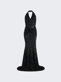 Halterneck Draped Sequin Dress Black