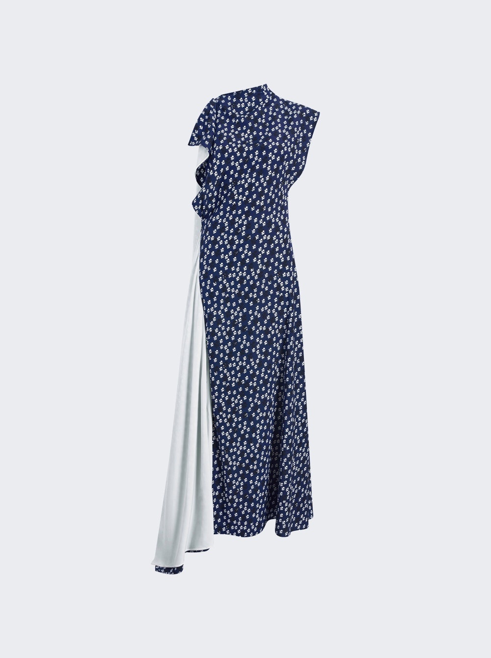 Details - Printed silk viscose - Delicate floral print throughout - Full-bodied silhouette - Contrast panels of fluidly draped fabric - Mock neckline - Concealed side zipper closure - Material: - viscose, 42% silk, 8% spandex Brand Style: R2523013B Designer/Brand: PROENZA SCHOULER