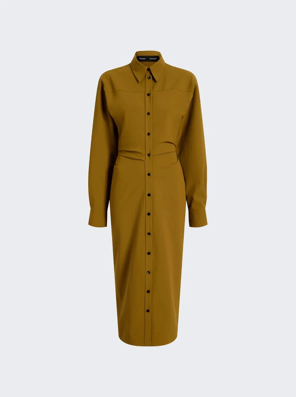 Details - Regular fit - Midi length - Pointed collar - Long sleeves - Button closure - Cinched waist - Care according to label - Material: 73% Cotton, 20% Polyamide, 7% Elastane Vendor Color Code: Brand Style: R2543028 BC026B Designer/Brand: PROENZA SCHOULER